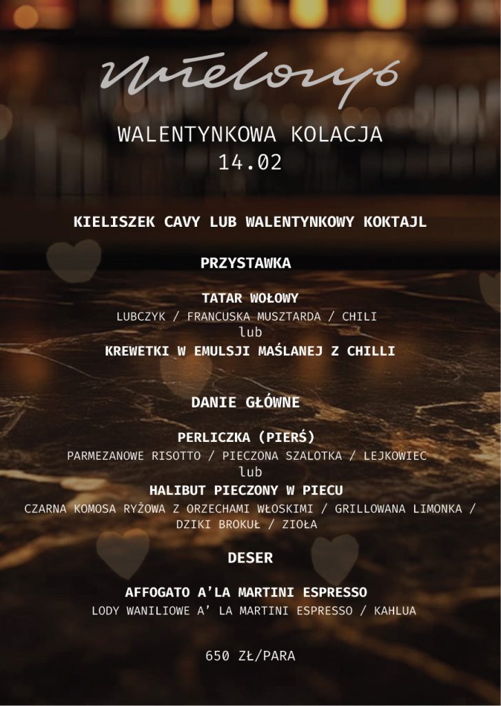 Na ten wieczór przygotowaliśmy specjalne menu, które pozwoli Wam wybrać ulubione kompozycje dań, celebrując miłość w najlepszym wydaniu – przy stole, który łączy.
